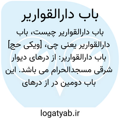 [ویکی حج] باب دارالقواریر: از درهای دیوار شرقی مسجدالحرام می باشد. این باب دومین در از درهای دیوار شرقی مسجدالحرام بود. این در چون در مقابل خانه عتبة بن ربیعة بن عبدشمس قرار داشت و در زمان هارون الرشید به دست حماد بربری، از کار گزاران عباسی بازسازی و درون آن با شیشه های زرد و سبز تزیین گشت و به دارالقواریر مشهور شد. به این در، باب مدرسه قایتبای هم گفته اند. در منابع گذشته، از این باب یاد نشده است.