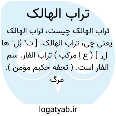 تراب الهالک. [ ت ُ بُل ْ ها ل ِ ] ( ع اِ مرکب ) تراب الفار. سم الفار است. ( تحفه حکیم مؤمن ). مرگ موش. شُک. رهج الفار: و به انفاس ممسک الارواح از تراب الهالک حافظالاجساد برانگیزد. ( دره نادره چ شهیدی ص 91 )