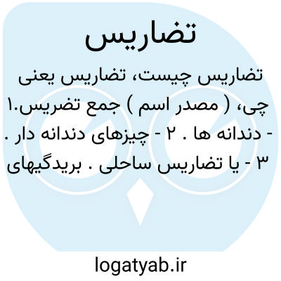 ( مصدر اسم ) جمع تضریس.۱ - دندانه ها. ۲ - چیزهای دندانه دار. ۳ - یا تضاریس ساحلی. بریدگیهای ساحلی مانند خلیج دماغه شبه جزیره و مانند آن.