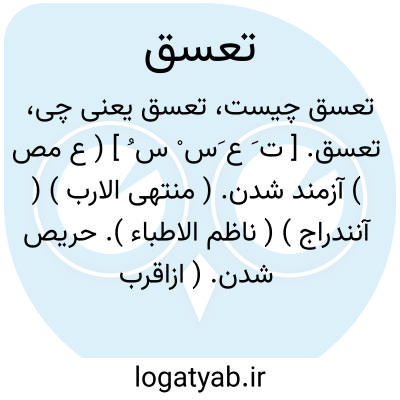 تعسق. [ ت َ ع َس ْ س ُ ] ( ع مص ) آزمند شدن. ( منتهی الارب ) ( آنندراج ) ( ناظم الاطباء ). حریص شدن. ( ازاقرب الموارد ). || چفسیدن و لازم گرفتن. ( منتهی الارب ) ( ناظم الاطباء ). چسپیدن و لازم گرفتن. ( آنندراج ) ( از اقرب الموارد ). || ستیهیدن در طلب چیزی. ( منتهی الارب ) ( آنندراج ) ( ناظم الاطباء ). الحاح و اصرار کردن در طلب چیزی. ( از اقرب الموارد ).