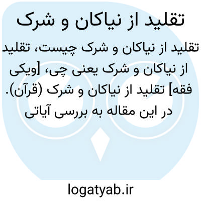 [ویکی فقه] تقلید از نیاکان و شرک (قرآن). در این مقاله به بررسی آیاتی چند از قرآن کریم که در مورد شرک و تقلید کورکورانه مقلدین از اجدادشان می پردازیم.