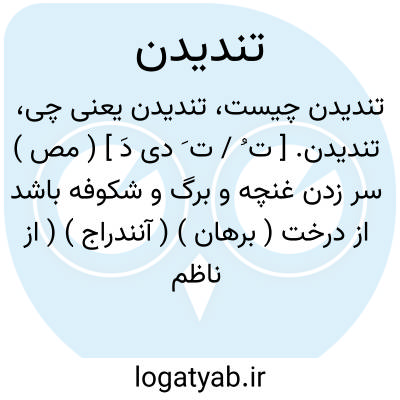 تندیدن. [ ت ُ / ت َ دی دَ ] ( مص ) سر زدن غنچه و برگ و شکوفه باشد از درخت ( برهان ) ( آنندراج ) ( از ناظم الاطباء ) چه هرگاه درخت شروع در برگ و شکوفه برآوردن کند گویند تندید یعنی برگ و شکوفه برآورد. ( برهان ذیل تندید ). شکوفه بیرون آوردن درخت را گویند. ( از لغت فرس اسدی چ اقبال ص 118 ذیل تندید ). در برگ آمدن درختان،گویند درخت می تندد یعنی برگ بیرون می آورد. ( اوبهی ).شکوفه بدرآوردن درخت. ( از صحاح الفرس ):