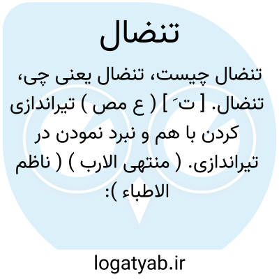 تنضال. [ ت َ ] ( ع مص ) تیراندازی کردن با هم و نبرد نمودن در تیراندازی. ( منتهی الارب ) ( ناظم الاطباء ): ناضَلَه ُ مناضلةً و نضالاً و تنضالاً. || گفتگوی عذر پیش آوردن و رفع کردن: ناضل عنه. ( ناظم الاطباء ).
