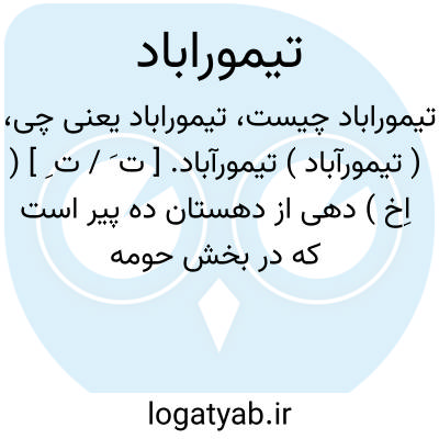 ( تیمورآباد ) تیمورآباد. [ ت َ / ت ِ ] ( اِخ ) دهی از دهستان ده پیر است که در بخش حومه شهرستان خرم آباد واقع است و 180 تن سکنه دارد. ( از فرهنگ جغرافیایی ایران ج 6 ).