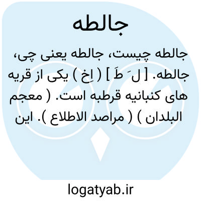 جالطه. [ ل َ طَ ] ( اِخ ) یکی از قریه های کنبانیه قرطبه است. ( معجم البلدان ) ( مراصد الاطلاع ). این کلمه در نزهة القلوب ج 3 ص 238 بصورت جزیره «خالصه » و در حاشیه همان صفحه «جالطه » آمده است و مؤلف آرد: جزیره ای است براه روم به اسکندریه. رجوع به کتاب فوق و صفحه مزبور و رجوع به جزیره شود.