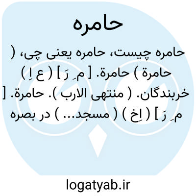 ( حامرة ) حامرة. [ م ِ رَ ] ( ع اِ ) خربندگان. ( منتهی الارب ).