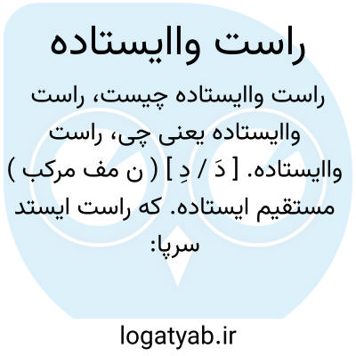 راست واایستاده. [ دَ / دِ ] ( ن مف مرکب ) مستقیم ایستاده. که راست ایستد سرپا: مقتن؛ راست واایستاده. ( منتهی الارب ).