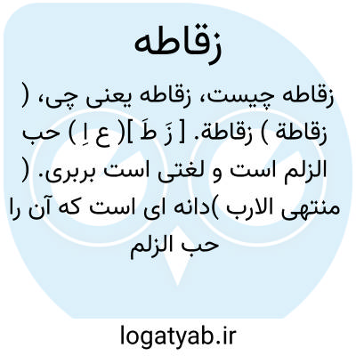 ( زقاطة ) زقاطة. [ زَ طَ ]( ع اِ ) حب الزلم است و لغتی است بربری. ( منتهی الارب )دانه ای است که آن را حب الزلم نیز گویند. ( ناظم الاطباء ). اسم بربری حب الزلم است. ( تحفه حکیم مؤمن ).