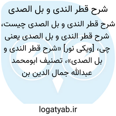 [ویکی فقه] شرح قطر الندی و بل الصدی (کتاب). «شرح قطر الندی و بل الصدی»، تصنیف ابومحمد عبدالله جمال الدین بن هشام انصاری، معروف به ابن هشام است.