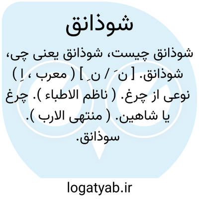 شوذانق. [ ن َ / ن ِ ] ( معرب، اِ ) نوعی از چرغ. ( ناظم الاطباء ). چرغ یا شاهین. ( منتهی الارب ). سوذانق. سوذق. سوذنیق. شوذنیق. شوذق. شوذنوق. شیذنوق. شاهین و آن معرب از فارسی است و اصل آن سادانک، سادنک، سودناه ( نیم درهم ). ( از المعرب جوالیقی ص 187، 204 ). ادی شیر احتمال داده است که این کلمه فارسی نباشد بلکه معرب از یونانی باشد. ( از حاشیه المعرب جوالیقی ص 187، 204 ).