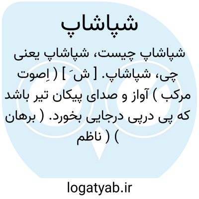شپاشاپ. [ ش َ ] ( اِصوت مرکب ) آواز و صدای پیکان تیر باشد که پی درپی درجایی بخورد. ( برهان ) ( ناظم الاطباء ). شپشاپ. شپ شپ. ( حاشیه برهان چ معین ). آواز تیرهای پی هم انداخته. ( فرهنگ نظام ). آواز صدای پیکان تیر که پی درپی افکنندو آن را شپشاپ نیز گویند. ( انجمن آرا ):