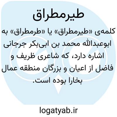کلمه‌ی «طیرمطراق» یا «طرمطراق» به ابوعبدالله محمد بن ابی‌بکر جرجانی اشاره دارد، که شاعری ظریف و فاضل از اعیان و بزرگان منطقه عُمال بخارا بوده است. این نام به عنوان لقب یا تخلص ادبی او به کار رفته و در منابع تاریخی و ادبی، از جمله ترجمه احوال هرثمی، ذکر شده است. طیرمطراق علاوه بر شهرت به شعر و ادب، نشان‌دهنده جایگاه اجتماعی و فرهنگی او در جامعه بخارا بوده است. در معنای کلی، «طیرمطراق» به شخصیتی ادبی و شاعر اشاره دارد که در قرون گذشته در منطقه خراسان یا خراسان بزرگ زندگی می‌کرده و آثار ادبی او ثبت و یاد شده‌اند.