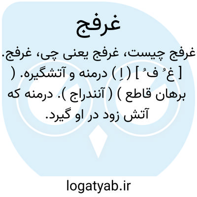 غرفج. [ غ ُ ف ُ ] ( اِ ) درمنه و آتشگیره. ( برهان قاطع ) ( آنندراج ). درمنه که آتش زود در او گیرد. گرفج. ( فرهنگ رشیدی ). رجوع به درمنه شود. || هر هیزمی که زود آتش در آن افتد، وبه عربی ابوسریع خوانند. ( برهان قاطع ) ( آنندراج ).