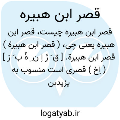 ( قصر ابن هبیرة ) قصر ابن هبیرة. [ ق َ رُ اِ ن ِ هَُ ب َ رَ ] ( اِخ ) قصری است منسوب به یزیدبن عمربن هبیرةبن معیة والی عراق از طرف مروان بن محمدبن مروان. وی بر کنار فرات کوفه شهری ساخت و در آن سکونت کرد و چون مروان به وی سفارش کرد که از مجاورت مردم کوفه بپرهیزد او آن شهر را ناتمام گذاشت و نزدیک پل سورا قصری ساخت که به نام وی مشهور گشت. ( معجم البلدان ).