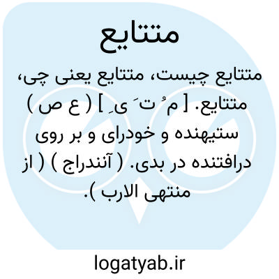 متتایع. [ م ُ ت َ ی ِ ] ( ع ص ) ستیهنده و خودرای و بر روی درافتنده در بدی. ( آنندراج ) ( از منتهی الارب ). کسی که درپیچد به بدی و خودرأیی درآن کند. ( ناظم الاطباء ). || سرعت نماینده.( آنندراج ) ( از منتهی الارب ). آن که بستیهد و عجله کنددر هر کاری. ( ناظم الاطباء ). || بادی که تاراند مر گیاه را. ( آنندراج ) ( از منتهی الارب ). بادی که پراکنده کند گرد و خاک را و ببرد گیاه خشک را. ( از منتهی الارب ) ( از ناظم الاطباء ). || آماده فتنه و ستیزه جو و خودرای. ( ناظم الاطباء ) ( از فرهنگ جانسون ). || آن که خویشتن را بیندازد مانند مستان. ( ناظم الاطباء ) ( از منتهی الارب ). || شتری که در رفتن کتفهای خود را بجنباند. ( ناظم الاطباء ) ( از منتهی الارب ) ( از فرهنگ جانسون ). || شتاب پی در پی. ( ناظم الاطباء ) ( از فرهنگ جانسون ). || کارهای مضطرب و آشفته. ( ناظم الاطباء ). || کسی که بر خلاف مردمان کار کند. ( ناظم الاطباء ) ( از فرهنگ جانسون ). و رجوع به تتایع شود.