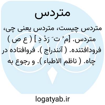 متردس. [م ُ ت َ رَدْ دِ ] ( ع ص ) فرودافتنده. ( آنندراج ). فروافتاده در چاه. ( ناظم الاطباء ). و رجوع به تردس شود.