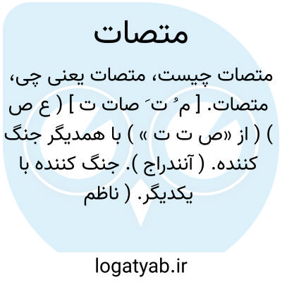 متصات. [ م ُ ت َ صات ت ] ( ع ص ) ( از «ص ت ت » ) با همدیگر جنگ کننده. ( آنندراج ). جنگ کننده با یکدیگر. ( ناظم الاطباء ) ( از اقرب الموارد ). و رجوع به تصات شود.