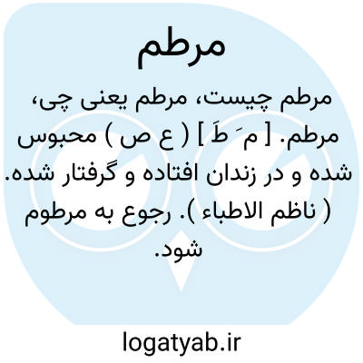 مرطم. [ م َ طَ ] ( ع ص ) محبوس شده و در زندان افتاده و گرفتار شده. ( ناظم الاطباء ). رجوع به مرطوم شود.