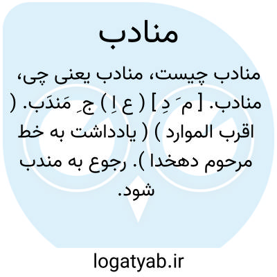 منادب. [ م َ دِ ] ( ع اِ ) ج ِ مَندَب. ( اقرب الموارد ) ( یادداشت به خط مرحوم دهخدا ). رجوع به مندب شود.