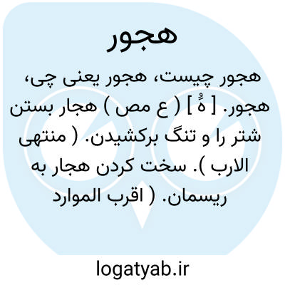 هجور. [ هَُ ] ( ع مص ) هجار بستن شتر را و تنگ برکشیدن. ( منتهی الارب ). سخت کردن هجار به ریسمان. ( اقرب الموارد ).