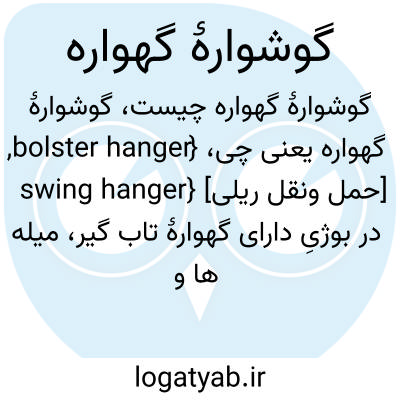 {bolster hanger, swing hanger} [حمل ونقل ریلی] در بوژیِ دارای گهوارۀ تاب گیر، میله ها و اتصالاتی که از بالا به قاب بوژی و از پایین به تشتک فنر وصل می شوند