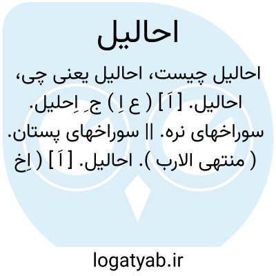 احالیل. [ اَ ] ( ع اِ ) ج ِ اِحلیل. سوراخهای نره. || سوراخهای پستان. ( منتهی الارب ).