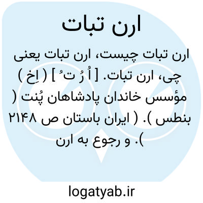 ارن تبات. [ اُ رُ ت ُ ] ( اِخ ) مؤسس خاندان پادشاهان پُنت ( بنطس ). ( ایران باستان ص 2148 ). و رجوع به ارن توبات شود.