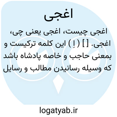 اغجی. [ ] ( اِ ) این کلمه ترکیست و بمعنی حاجب و خاصه پادشاه باشد که وسیله رسانیدن مطالب و رسایل پادشاهانست به اعیان دولت، چنانکه در تاریخ بیهقی کراراً به این معنی آمده و ظاهراًیکی از مصطلحات بسیار متداول دربار ایران در قرن چهارم و پنجم بوده است. ( احوال و اشعار رودکی ص 516 ).