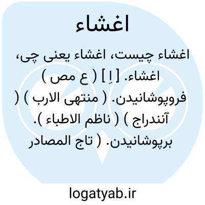 اغشاء. [ اِ ] ( ع مص ) فروپوشانیدن. ( منتهی الارب ) ( آنندراج ) ( ناظم الاطباء ). برپوشانیدن. ( تاج المصادر بیهقی ). و منه قوله تعالی: «فاغشیناهم فهم لایبصرون » ( قرآن 9/36 ). ( از منتهی الارب ) ( آنندراج ). پوشیدن. ( ترجمان القرآن ترتیب عادل بن علی ). || کور ساختن. ( منتهی الارب ) ( آنندراج ) ( تاج المصادر بیهقی ) ( ناظم الاطباء ). پوشانیدن خدا بینائی کسی را و این معنی مجازی است: اغشی اﷲ علی بصره؛ غطاه و هو مجاز. ( از اقرب الموارد ). || برآوردن. ( منتهی الارب ) ( آنندراج ) ( ناظم الاطباء ). بیاوردن. ( تاج المصادر بیهقی ). || فروافکندن کار بر کسی. ( منتهی الارب ) ( آنندراج ) ( ناظم الاطباء ). فروپوشانیدن کار بر کسی: غشیت فلاناً الامر و اغشیته ایاه اغشاءً؛ جعلته یغشاه. ( از اقرب الموارد ). || تاریک شدن شب: اغشی اللیل؛ اظلم. ( از اقرب الموارد ).