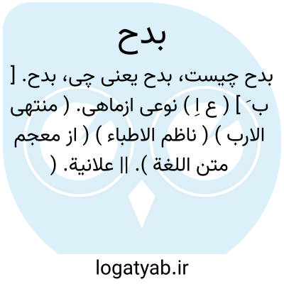 بدح. [ ب َ ] ( ع اِ ) نوعی ازماهی. ( منتهی الارب ) ( ناظم الاطباء ) ( از معجم متن اللغة ). || علانیة. ( آنندراج ) ( معجم متن اللغة ): فعل فلان کذا بدحاً؛ علانیه کرد فلان آن کار را. ( ناظم الاطباء ). قطعه بدحاً؛ ای علانیةً. ( منتهی الارب ).