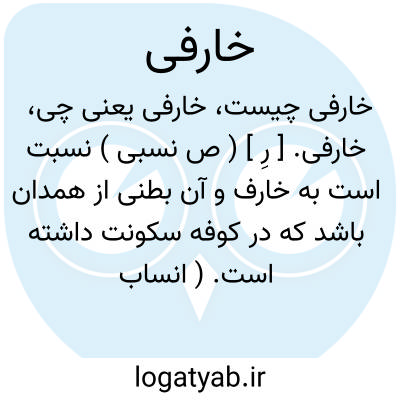 خارفی. [ رِ ] ( ص نسبی ) نسبت است به خارف و آن بطنی از همدان باشد که در کوفه سکونت داشته است. ( انساب سمعانی ).