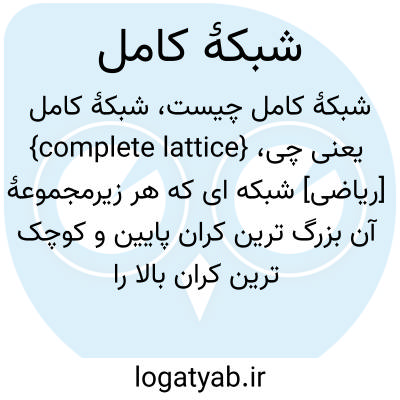 فرهنگستان زبان و ادب {complete lattice} [ریاضی] شبکه ای که هر زیرمجموعۀ آن بزرگ ترین کران پایین و کوچک ترین کران بالا را دارد