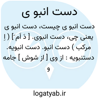 ( دست انبو ی ) ( اسم ) ۱ - گلولهای مرکب از عطریات که آنرا بر دست گیرند و گاه گاه بو کنند شمامه. ۲ - هر میوه خوشبو. ۳ - گیاهی است از تیره کدوییان دارای میوهای کوچک و گرد و خوشبو و زرد رنگ شبیه به گرمک که خطوط سبز یا سفید دارد شمام درداب.، دست انبو دست انبویه دستنبویه
