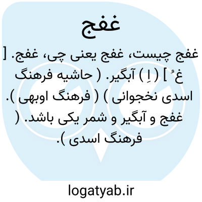 غفج. [ غ ُ ] ( اِ ) آبگیر. ( حاشیه فرهنگ اسدی نخجوانی ) ( فرهنگ اوبهی ). غفج و آبگیر و شمر یکی باشد. ( فرهنگ اسدی ). مغاک. ( فرهنگ اسدی چ اقبال ص 74 ). گو. گودال. حفره: