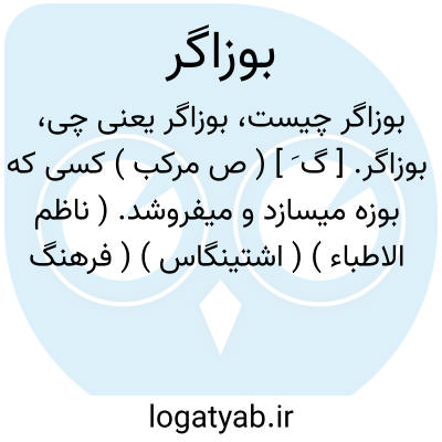 بوزاگر. [ گ َ ] ( ص مرکب ) کسی که بوزه میسازد و میفروشد. ( ناظم الاطباء ) ( اشتینگاس ) ( فرهنگ فارسی معین ).