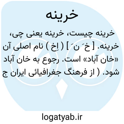خرینه. [ خ َ ن َ ] ( اِخ ) نام اصلی آن «خان آباد» است. رجوع به خان آباد شود. ( از فرهنگ جغرافیائی ایران ج 5 ).