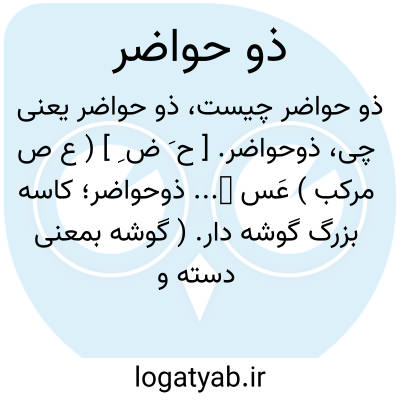 ذوحواضر. [ ح َ ض ِ ] ( ع ص مرکب ) عَس ﱡ... ذوحواضر؛ کاسه بزرگ گوشه دار. ( گوشه بمعنی دسته و عروه است ).