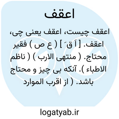 اعقف. [ اَ ق َ ] ( ع ص ) فقیر محتاج. ( منتهی الارب ) ( ناظم الاطباء ). آنکه بی چیز و محتاج باشد. ( از اقرب الموارد ). || تازی درشت و بدخوی. یقال: اعرابی اعقف؛ ای جاف. ( منتهی الارب ) ( ناظم الاطباء ). تازی تندخوی درشت. یقال: جأنی اعرابی اعقف. ( از اقرب الموارد ). || کژ. ( منتهی الارب ). کج. ( ناظم الاطباء ). کج و ناهموار. یقال: عود معقوف و اعقف. ( از اقرب الموارد ). || منحنی از هر چیزی. ( منتهی الارب ) ( ناظم الاطباء ). منحنی. ( اقرب الموارد ).