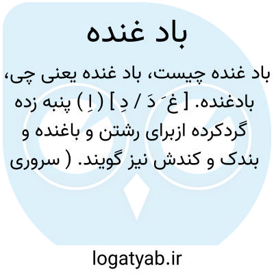 لغت نامه دهخدا بادغنده. [ غ َ دَ / دِ ] ( اِ ) پنبه زده گردکرده ازبرای رشتن و باغنده و بندک و کندش نیز گویند. ( سروری ).