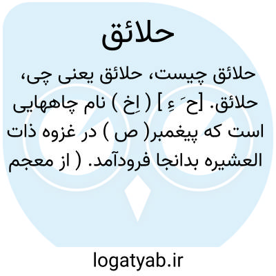 لغت نامه دهخدا حلائق. [ح َ ءِ ] ( اِخ ) نام چاههایی است که پیغمبر( ص ) در غزوه ذات العشیره بدانجا فرودآمد. ( از معجم البلدان ).