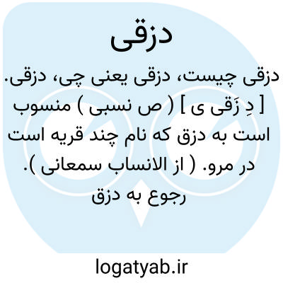 دزقی. [ دِ زَقی ی ] ( ص نسبی ) منسوب است به دزق که نام چند قریه است در مرو. ( از الانساب سمعانی ). رجوع به دزق شود.