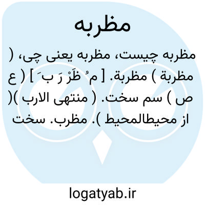 ( مظربة ) مظربة. [ م ُ ظَرْ رَ ب َ ] ( ع ص ) سم سخت. ( منتهی الارب )( از محیطالمحیط ). مظرب. سخت مانند سم و ناخن و چنگ.( ناظم الاطباء ). و رجوع به تظریب و ماده قبل شود.