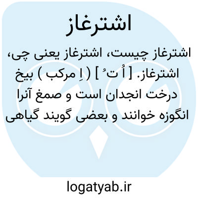 اشترغاز. [ اُ ت ُ ] ( اِ مرکب ) بیخ درخت انجدان است و صمغ آنرا انگوزه خوانند و بعضی گویند گیاهی است که بیخ آنرا آچار سازند و معنی آن شو»الجمال است و عربان زنجبیل العجم خوانند. تب ربع را مفید باشد. ( برهان ) ( آنندراج ). مرکب از دو کلمه فارسی اُشتر و غاژ بمعنی خار. لاتین آن لکاکانت است. ( دزی ج 1 ص 24 ). بیخ درخت انجدان است و صمغ آنرا انگوزه خوانند و بعضی گویند گیاهی است که بیخ آنرا آچارسازند و معنی آن شوکةالجمال است و عربان زنجبیل العجم خوانند. تب ربع را مفید باشد و در فرهنگی بجای زای هوز، رای قرشت هم بدیدن آمده، اصح اول است. ( هفت قلزم ). ریشه درخت انگدان است و صمغ هم دارد. در عربی زنجبیل العجم و شوکةالجمال گویند. اکثر در ولایت مرو پیدا میشود و خوبش در روم است. ریشه آنرا می جوشانند و به کاغذ و کرباس آهار میزنند. ( از شعوری ج 1 ص 146 ). بیخ درخت انگدان است و صمغ آن انگوزه است. ( جهانگیری ). بیخ درخت انجدان است. صمغ آنرا انگوزه گویند. بعضی گویند گیاهی است که بیخ آن را آچار سازند. ( انجمن آرای ناصری ). نام گیاهی است که از بیخش آچار سازند. کذا فی شرفنامه، اما در ادات بر این معنی با راء مهمله است. ( مؤیدالفضلا ). نام گیاهی است که از بیخ اوآچار سازند. ( شرفنامه منیری ). تازه آنرا مانند کاهو در مصر و موصل میخورند. بیخ سپید انگذان. ( منتهی الارب ). ریشه انجدان خراسانی. زنجبیل العجم. زنجبیل الفارسی. ( منتهی الارب ). طرثوث. ( مهذب الاسماء ). شترغاز.( جهانگیری ). اشترخار. شوکةالجمال. راویز. شترخار. خارشتر. خاراشتر. صمغ آن اشق است که آنرا صمغ الزاق الذهب نیز نامند. ( ذخیره خوارزمشاهی ). لحلاح. کنگراوتی. دوه دیکنی. بادآورد. ( فرهنگ گیاهی ج 1 ص 257 ): و فی مفازتهم [اهل مروالشاهجان ] یکون الاشترغازالذی یحمل الی سائرالدنیا. ( صورةالاقالیم اصطخری ). واز وی [مرو] پنبه نیک و اشترغاز و فلاته و سرکه و آبکامه و جامه های قزین و ملحم خیزد. ( حدود العالم ).