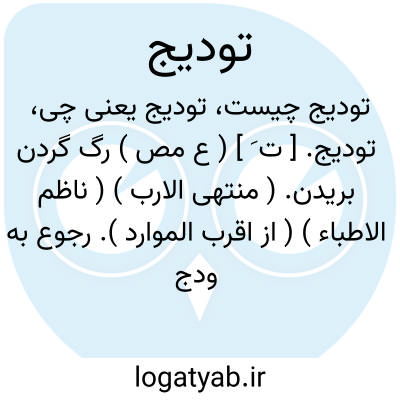 تودیج. [ ت َ ] ( ع مص ) رگ گردن بریدن. ( منتهی الارب ) ( ناظم الاطباء ) ( از اقرب الموارد ). رجوع به ودج شود.