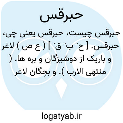 حبرقس. [ ح َ ب َ ق َ ] ( ع ص ) لاغر و باریک از دوشیزگان و بره ها. ( منتهی الارب ). و بچگان لاغر شتر و گوسفند.
