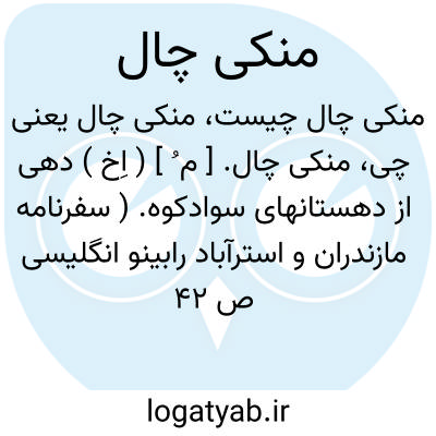 لغت نامه دهخدا منکی چال. [ م ُ ] ( اِخ ) دهی از دهستانهای سوادکوه. ( سفرنامه مازندران و استرآباد رابینو انگلیسی ص 42 ).