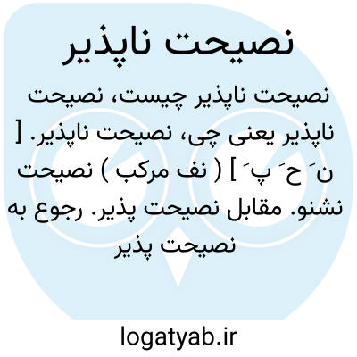 لغت نامه دهخدا نصیحت ناپذیر. [ ن َ ح َ پ َ ] ( نف مرکب ) نصیحت نشنو. مقابل نصیحت پذیر. رجوع به نصیحت پذیر شود.