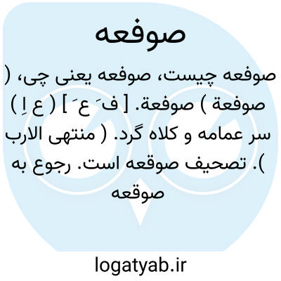 ( صوفعة ) صوفعة. [ ف َ ع َ ] ( ع اِ ) سر عمامه و کلاه گرد. ( منتهی الارب ). تصحیف صوقعه است. رجوع به صوقعه شود.