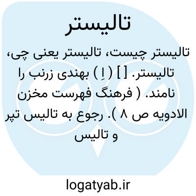 تالیستر. [ ] ( اِ ) بهندی زرنب را نامند. ( فرهنگ فهرست مخزن الادویه ص 8 ). رجوع به تالیس تپر و تالیس شود.