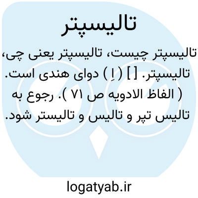 تالیسپتر. [ ] ( اِ ) دوای هندی است. ( الفاظ الادویه ص 71 ). رجوع به تالیس تپر و تالیس و تالیستر شود.